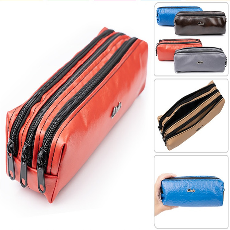 جامدادی چرمی ۳ زیپ با طراحی شیک و جادار، انتخابی مناسب برای نظمدهی انواع خودکار، مداد و لوازمتحریر است.